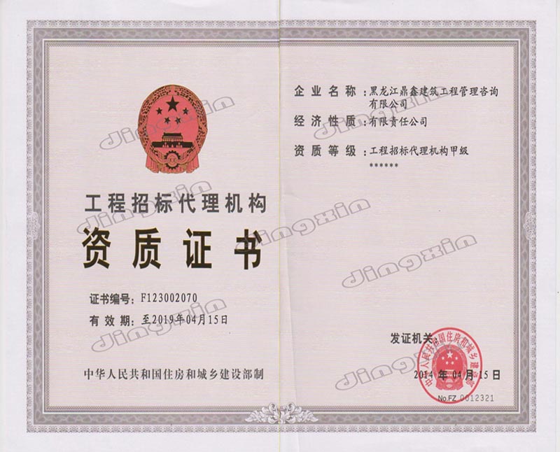 黑龍江鼎鑫建筑工程管理咨詢有限公司成立于2005年,注冊資金400萬元。具備中華人民共和國住房和城鄉(xiāng)建設(shè)部批準(zhǔn)的工程招標(biāo)代理機(jī)構(gòu)資格、中華人民共和國財(cái)政部批準(zhǔn)的政府采購招標(biāo)代理機(jī)構(gòu)資格、黑龍江省商務(wù)廳批準(zhǔn)的機(jī)電產(chǎn)品國際招標(biāo)代理機(jī)構(gòu)資格、中華人民共和國住房和城鄉(xiāng)建設(shè)部批準(zhǔn)的工程造價(jià)咨詢甲級(jí)資質(zhì)、黑龍江省住房和城鄉(xiāng)建設(shè)廳批準(zhǔn)的房屋建筑工程監(jiān)理乙級(jí)(市政公用工程監(jiān)理乙級(jí)資質(zhì))。主要從事建設(shè)工程及政府采購招標(biāo)、造價(jià)咨詢、工程監(jiān)理、項(xiàng)目管理等業(yè)務(wù)。